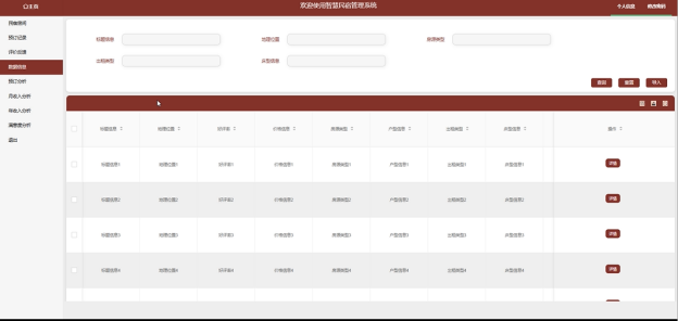 - 数据信息:提供数据信息的查询、重置、导入功能,方便管理者整理和分析民宿运营数据。