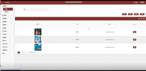 - 公共管理:管理员负责民宿的轮播图和通知公告的管理,向住客传达最新信息。