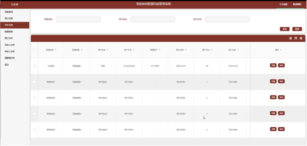 - 评价反馈:实现评价反馈的查询、重置、查看详情功能,及时了解客户意见和建议。