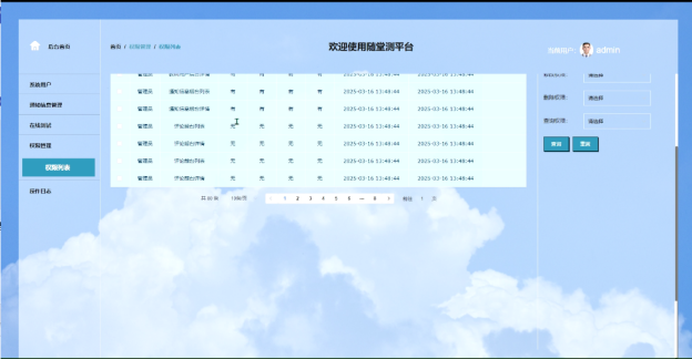 - 系统用户:系统用户模块提供了对不同用户角色的管理功能,包括管理员、学生用户等。管理员可以进行查询、重置、添加、删除、详情等操作,实现对教师和学生账户的全面管理。这有助于维护平台的用户秩序,确保平台的正常运行。