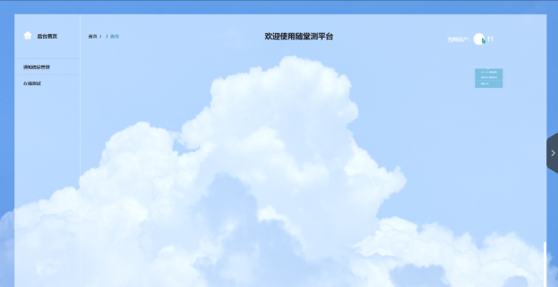 - 后台首页:后台首页提供数据统计图,其中包括了试卷平均分统计、考试成绩统计以及当前用户信息等模块。这些功能模块能够为管理员提供对平台整体运行情况的快速概览,帮助管理员更好地了解平台的运行状态。