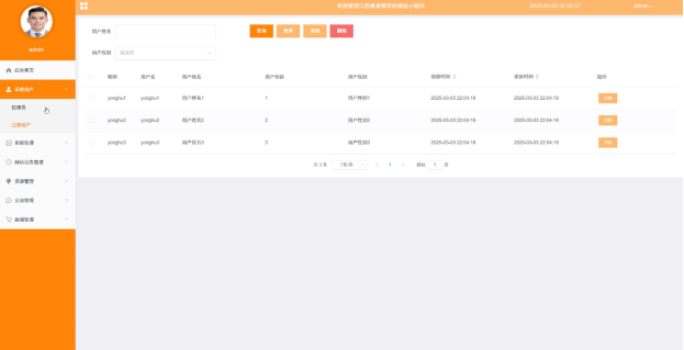 - 系统用户:系统用户模块允许管理员管理平台上的所有用户账户,包括不同权限级别的管理员账户和注册用户账户。管理员可以添加新用户、编辑或删除现有用户信息,并且可以设置或修改用户的权限,确保每个用户只能访问他们被授权的系统部分。