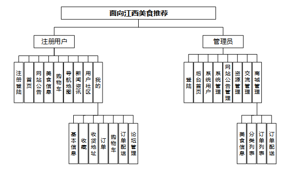 面向江西美食推荐划分为了前端模块和后端模块两大部分。