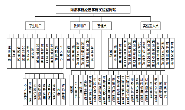商洛学院经管学院实验室网站划分为了前端模块和后端模块两大部分。