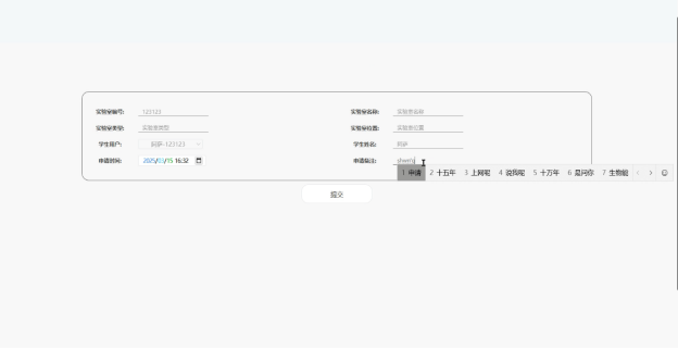 - 实验室管理:管理员可以对实验室进行添加、删除和查询操作,查看实验室的详细信息。此外,管理员还可以添加设备、添加实验室成员、添加课表以及处理实验室的申请事务。
