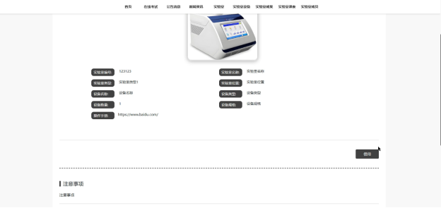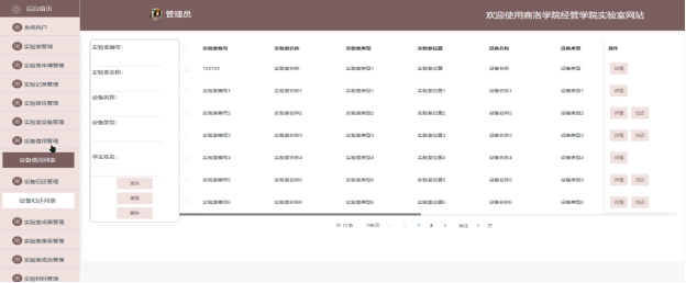 - 实验室设备管理:管理员可以对实验室内的设备进行删除和查询操作,查看设备的详细信息。管理员还可以对设备的借用和归还情况进行管理。