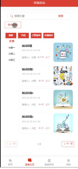 - 交流管理:管理员负责美食社区和社区分类的管理,包括查询、重置、删除、添加社区和分类,以及查看社区详情和用户互动,促进用户之间的交流和学习,提升社区活跃度。