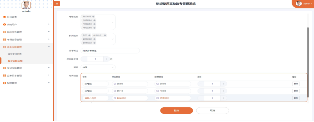 - 考试安排管理:管理员可以添加新的考试安排,包括考试时间、科目等信息,并且可以对现有的考试安排进行删除和查询操作。管理员还可以查看考试安排的详细内容。