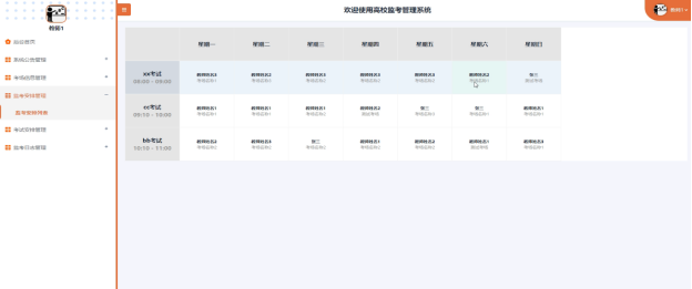 - 监考安排管理:教师可以查询监考安排,并查看监考任务的详细信息。此外,教师还可以查看监考安排,了解自己在各个考试时间段内的监考职责。