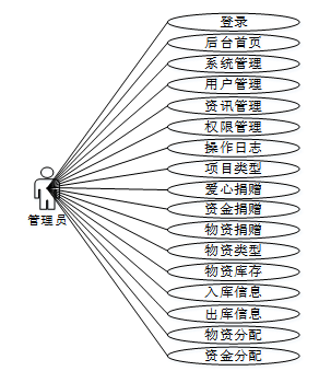 图 3-2红十字爱心捐赠管理系统管理员角色用例图