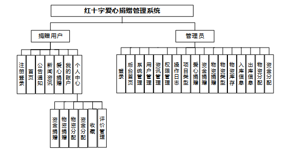 红十字爱心捐赠管理系统划分为了前端模块和后端模块两大部分。
