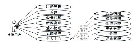图 3-1红十字爱心捐赠管理系统捐赠用户角色用例图