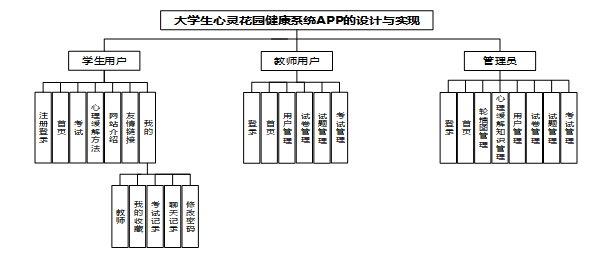 大学生心灵花园健康系统APP划分为了前端模块和后端模块两大部分。