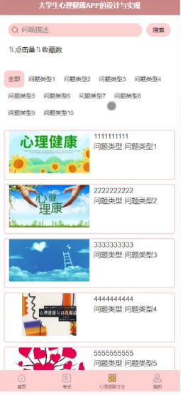 随着大学生心理问题日益受到关注,传统心理健康服务模式在覆盖范围与使用便捷性上存在局限,难以满足学生群体的多样化需求。本系统的设计与实现,希望借助移动应用的形式,为大学生提供一个随时随地可访问的心理健康支持平台。通过整合心理测试、情绪缓解方法推荐、考试评估等功能,帮助学生更好地认识自我心理状态,提升心理调适能力,增强心理素质。