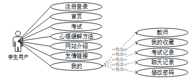 图 3-1大学生心灵花园健康系统APP学生用户角色用例图