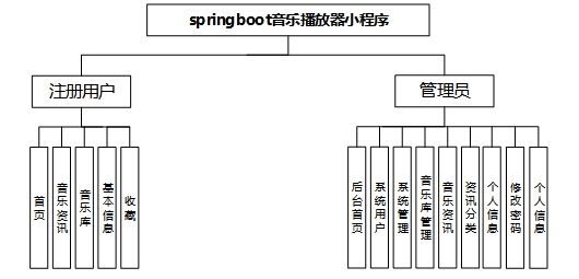 基于微信小程序的音乐播放器小程序划分为了用户管理模块和管理员模块这两大部分。