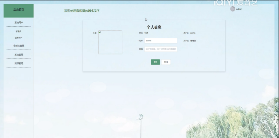 (5)个人信息:管理员点击“个人信息”按钮,可以对个人的头像、昵称、手机号码等信息进行更新。