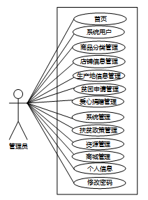 电商扶贫助农平台小程序中管理员用例图如图2.2所示: