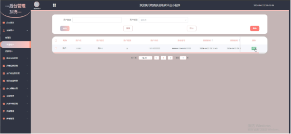 系统用户:包括用户账号的添加、编辑和删除操作,可以查看用户信息、修改用户权限、冻结或解冻用户账号等。界面如下图所示。