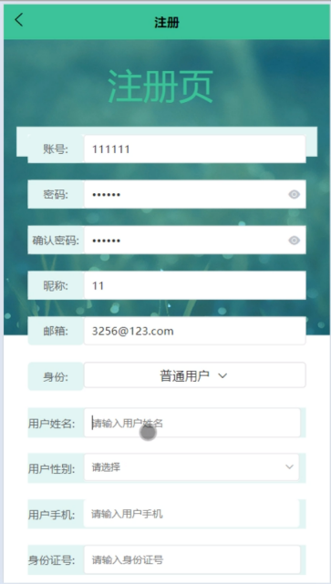 用户注册界面用于新用户进行账号注册,用户需要填写必要的个人信息并选择合适的用户名和密码。注册界面应该进行输入验证和数据格式检查,确保用户提供有效的信息。界面如下图所示。其主界面展示如下图4.2所示。