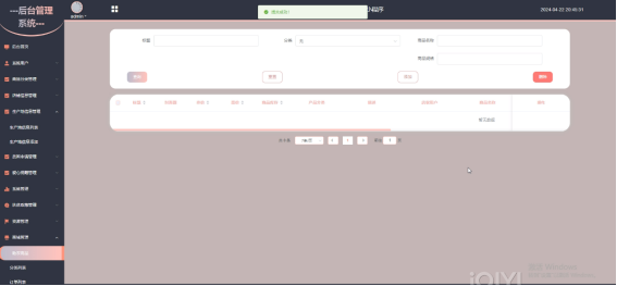 (2)助农商品管理:点击“助农商品”这个菜单,可以查看到所有助农商品详情,可以进行增删改查等操作。