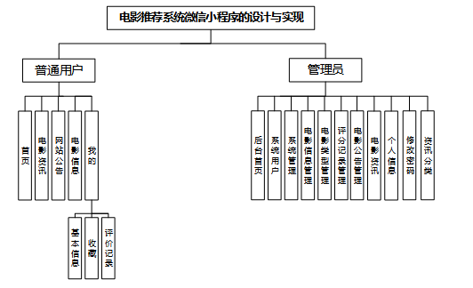 基于微信小程序的电影推荐系统微信小程序划分为了用户管理模块和管理员模块这两大部分。