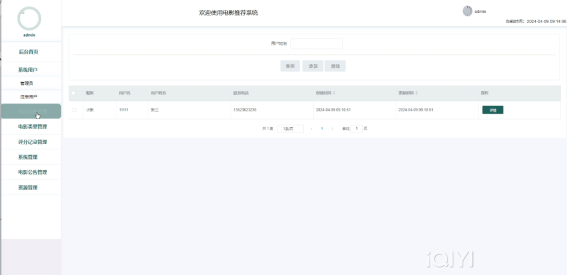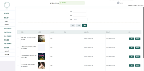电影资讯:可以发布到电影资讯详情,进行查询,添加、删除等操作。界面如下图所示。