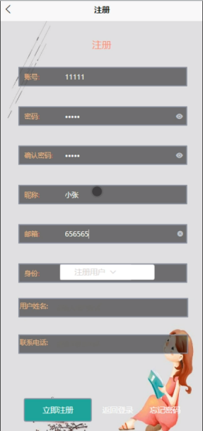 用户注册界面用于新用户进行账号注册,用户需要填写必要的个人信息并选择合适的用户名和密码。注册界面应该进行输入验证和数据格式检查,确保用户提供有效的信息。界面如下图所示。其主界面展示如下图4.2所示。