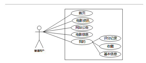 系统用例分析是对基于微信小程序的电影推荐系统微信小程序中各个功能模块的用户需求和行为进行分析,以识别和描述不同的用户用例。通过系统用例分析,可以深入了解用户在平台上的操作流程,为系统设计和开发提供指导,并确保平台能够满足用户的需求和期望。