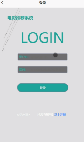(1)登录:基于微信小程序的电影推荐系统微信小程序前台注册后的用户是可以通过自己的账户名和密码进行登录的,当用户输入完整的自己的账户名和密码后,点击“登录”按钮后,将会首先验证输入的有没有空数据,再次验证输入的账户名+密码和数据库中当前保存的用户信息是否一致,只有在一致后将会登录成功并自动跳转到基于微信小程序的电影推荐系统微信小程序的首页中;否则将会提示相应错误信息。