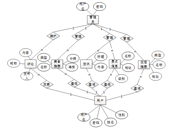 下面是整个旅游攻略系统中主要的数据库表总E-R实体关系图。