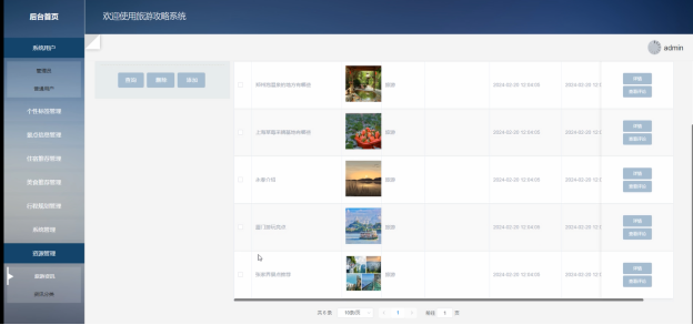 In summary, the tourism strategy system based on the Spring Boot framework provides users with personalized and convenient tourism information and planning services through design and implementation. This system helps users understand travel destinations, choose suitable accommodation and food venues, and plan their itinerary to improve their travel experience and satisfaction.