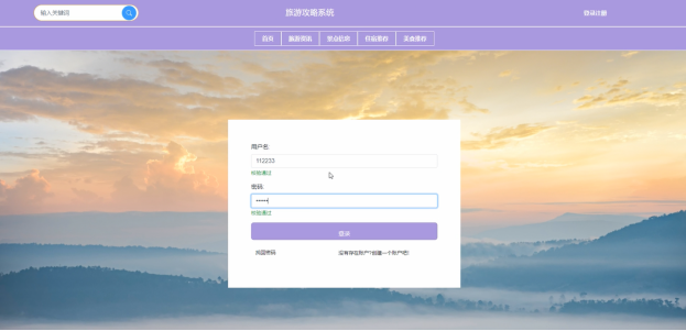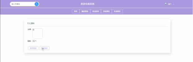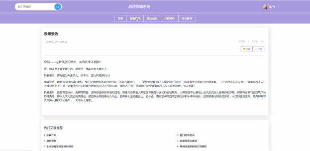 (1)查看旅游攻略系统的首页信息:旅游攻略系统的首页信息包含了首页、旅游资讯、景点信息、住宿推荐、美食推荐等。