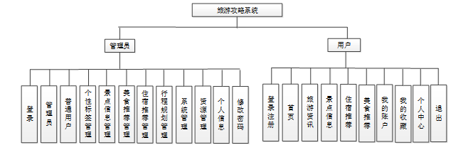 旅游攻略系统我划分为了普通用户管理模块和管理员模块这两大部分。