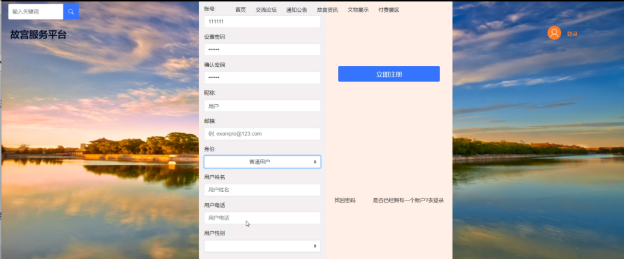 The design and implementation of a Java based Palace Museum service platform is an innovative project aimed at integrating traditional culture and modern technology. We are well aware that the Forbidden City, as a treasure of Chinese culture, carries rich historical heritage and artistic value. However, in the era of informatization, how to better inherit and showcase the culture of the Forbidden City, so that more people can experience its charm up close, has become an urgent problem to be solved. Therefore, we utilized Java, a powerful programming language, to design and implement the Palace Museum service platform. Through this platform, users can easily access the latest information, visit guides, cultural relics appreciation, and other information about the Forbidden City. At the same time, they can also enjoy innovative services such as virtual tours and interactive experiences. We look forward to using this platform to bring new brilliance to the culture of the Forbidden City and contribute to the inheritance and promotion of excellent traditional Chinese culture.