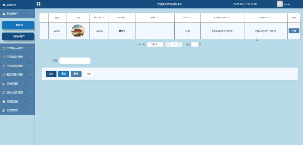 故宫服务平台中的管理人员是可以对注册的用户进行管理的,也可以对管理员进行管控。界面如下图4-6所示。