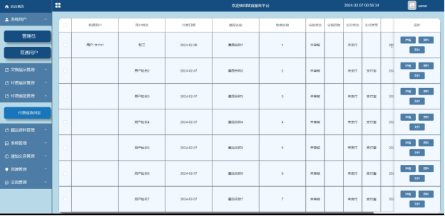 (5)付费展区:当用户点击“付费展区”这一菜单按钮,会显示管理员在后台发布的所有的付费展区信息,可以查看详情;可以进行付费、收藏、点赞、评论等;