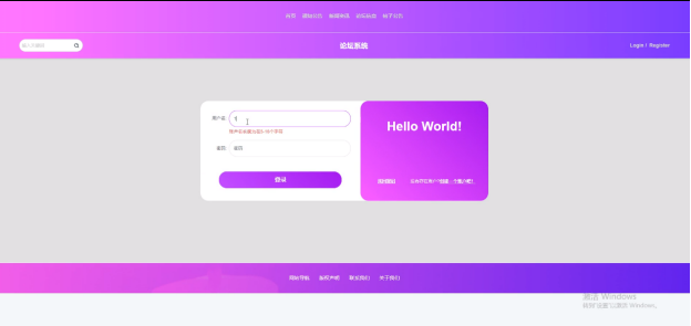 基于PHP的论坛系统设计与实现 中的注册后的用户是可以通过自己的账户名和密码进行登录的,当用户输入完整的自己的账户名和密码信息并点击“登录”按钮后,将会首先验证输入的有没有空数据,再次验证输入的账户名+密码和数据库中当前保存的用户信息是否一致,只有在一致后将会登录成功并自动跳转到基于PHP的论坛系统设计与实现 的首页中;否则将会提示相应错误信息,用户登录界面如下图4-3所示。