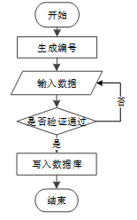 用户成功登入系统后就能够实现增加数据的操作,增加数据的编号由系统生成,用户不能随意填写,除了编号以外,其他增加信息用户自己填写,填写后的信息经过系统验证,验证通过后即可完成数据新增,数据新增的流程图如下图2-1所示。
