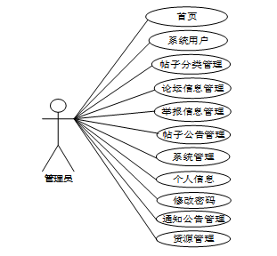 管理员是维护整个基于PHP的论坛系统设计与实现 中所有数据信息的。管理员角色用例如图2-5所示。