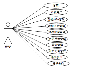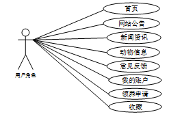 通过2.3功能的分析,得出了本校园流浪动物保护平台的用例图: