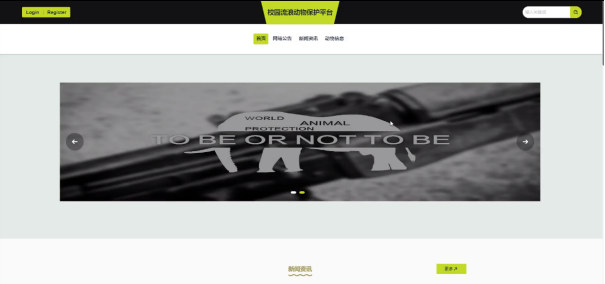 首页:首页是用户访问平台的首个界面,展示平台的核心功能和亮点,引导用户快速了解和使用平台,同时也展示一些需要关注的流浪动物信息。
