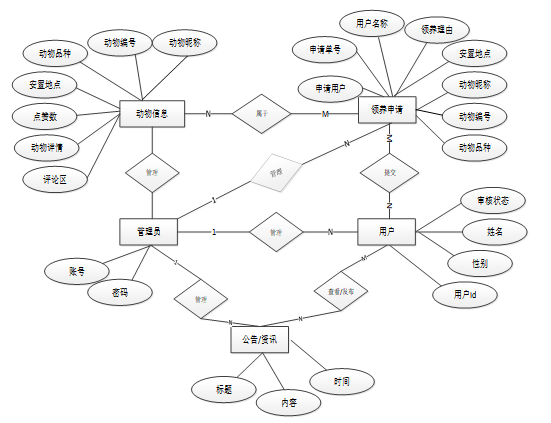 图3-3 校园流浪动物保护平台系统总E-R关系图