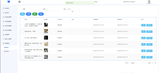 管理员负责管理和更新平台上的新闻资讯资源,包括添加、修改、删除新闻资讯和资讯分类,确保用户能够获取到丰富、有价值的资讯信息。界面如下图4-9所示。