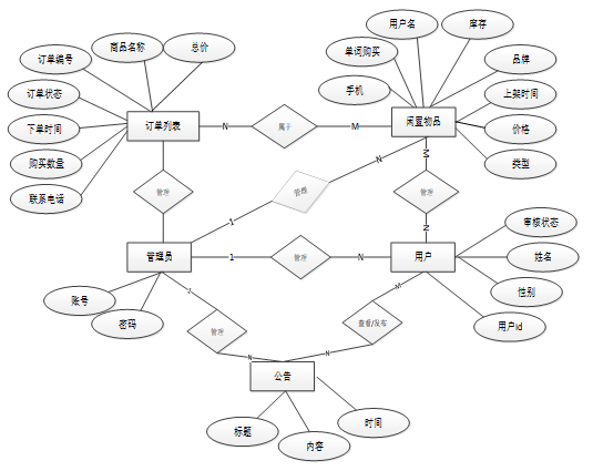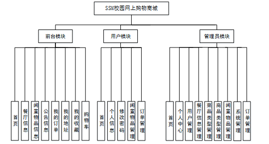 校园网上购物商城是中需要存储不少闲置物品信息,其模块功能结构,具体的结构图如下: