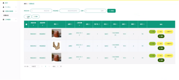 当用户台后点击“闲置物品管理”,能够看到用发布的闲置物品详情。闲置物品界面如图4-5所示。