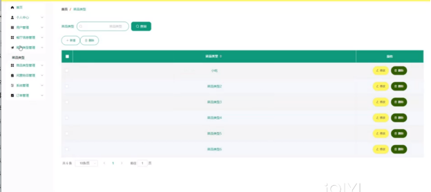 (6)菜品类型管理:点击“菜品类型管理”这个菜单,可以查看到菜品类型信息,进行查询,添加、删除等操作。