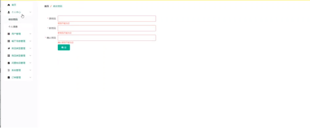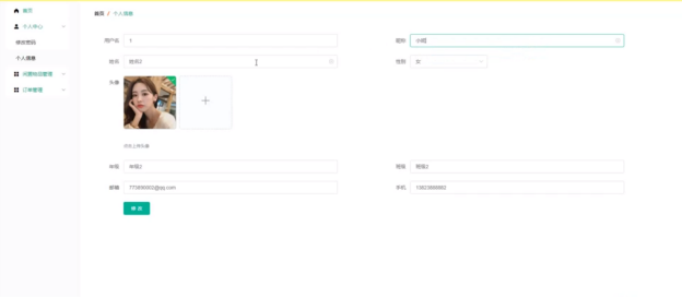 - 个人中心:在后台点击“个人中心”可以对个人资料+密码修改等的信息进行管控。