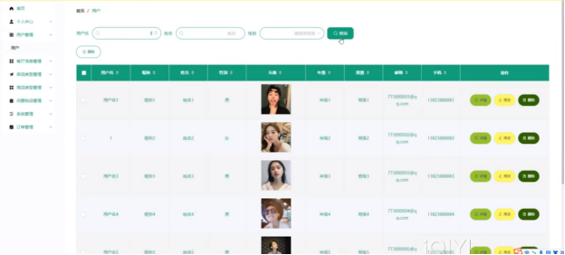 校园网上购物商城中的管理人员是可以对前台注册的用户进行管理的,界面如下图4-7所示。