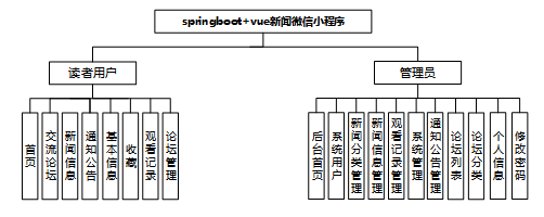 新闻微信小程序我划分为了用户管理模块和管理员模块这两大部分。